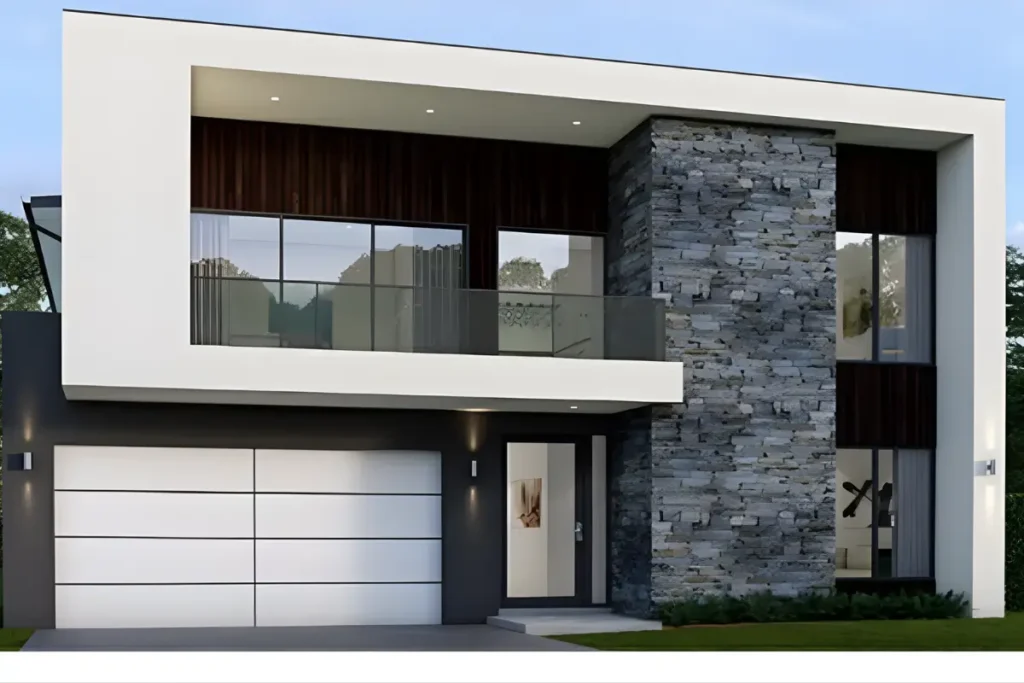 A stylish two-storey residence combining architectural design with functional living spaces. The home features a balanced layout with spacious living areas, modern finishes, and large windows that maximise natural light.